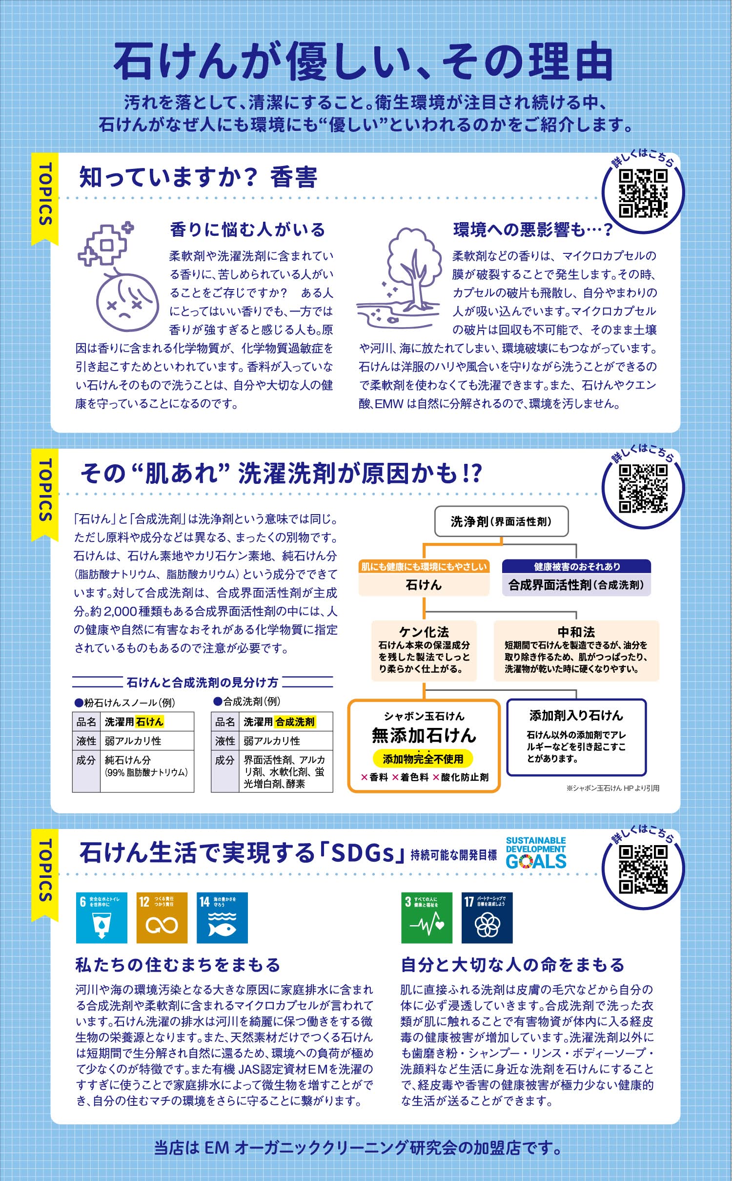 刺激のない、肌に安全な『シャボン玉石けん』でいたわってあげて下さい。